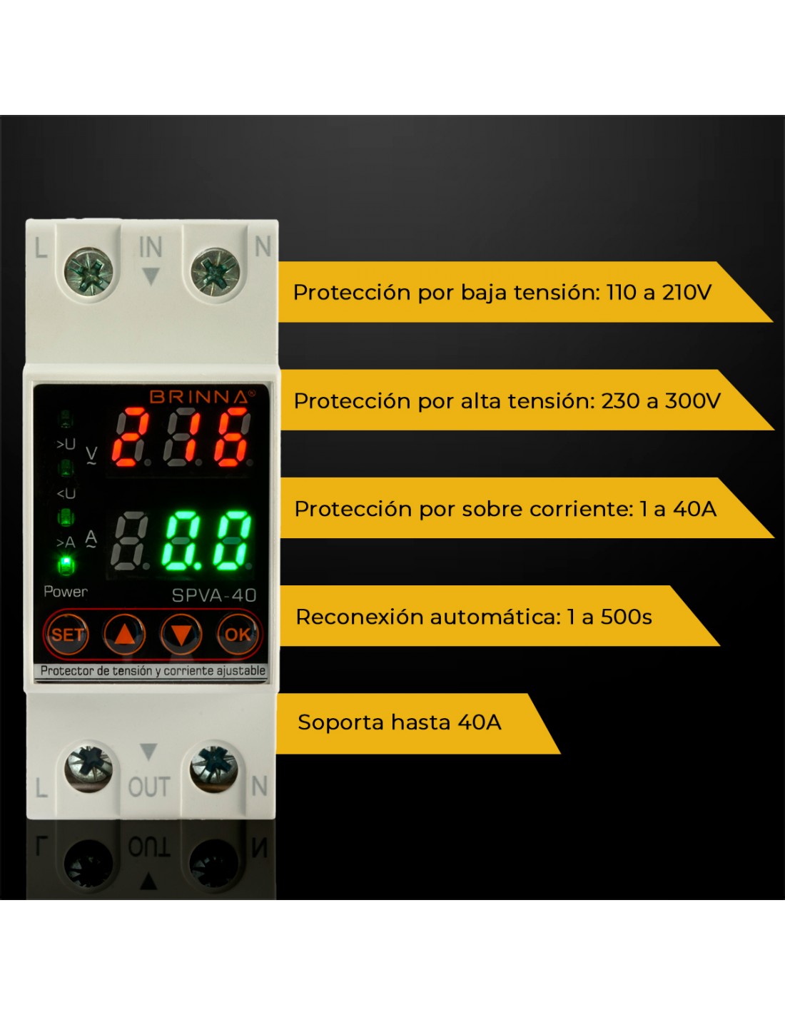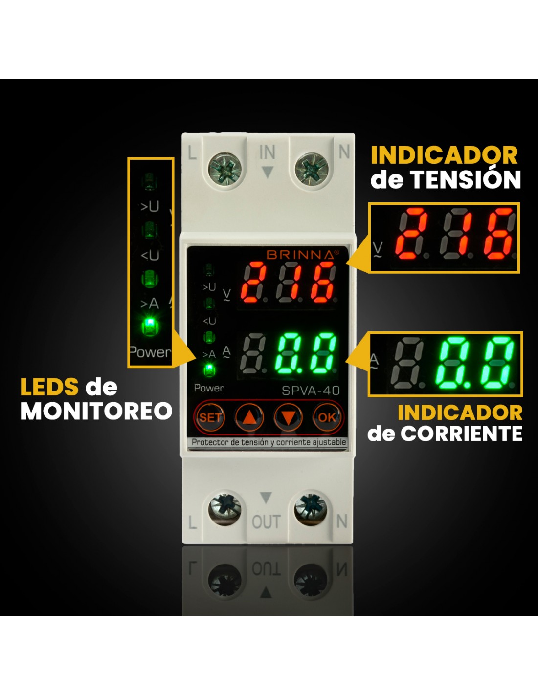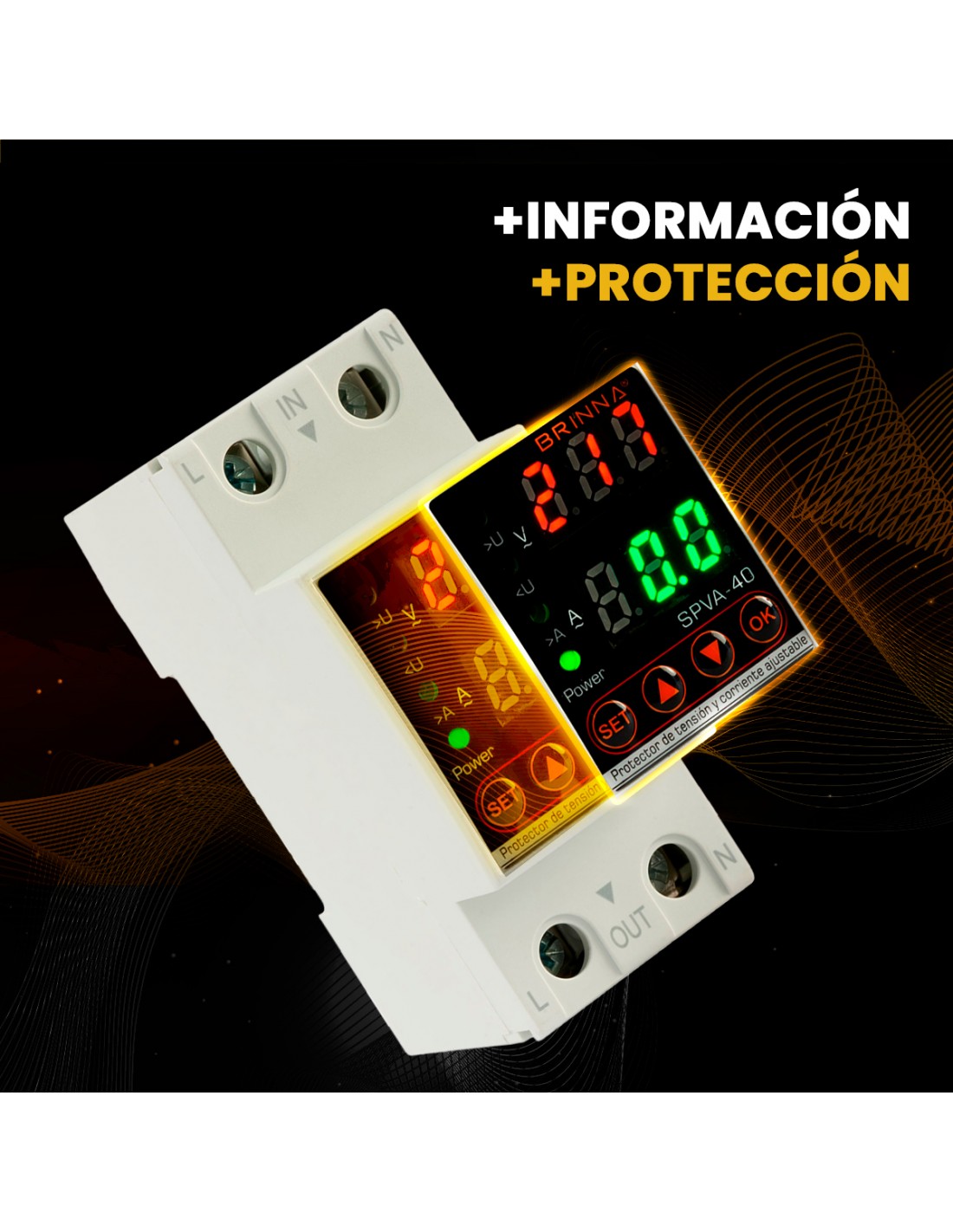 El SPVA-40 es un protector de subtensión, sobretensión y subcorriente monofásico, ideal para instalaciones residenciales y comerciales