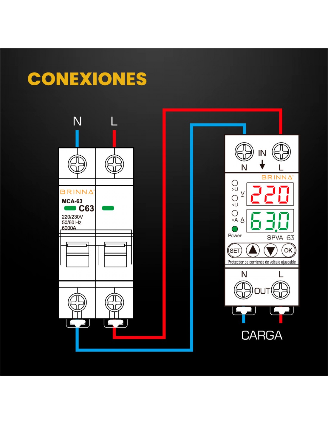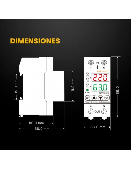 El SPVA-63 es un protector de subtensión, sobretensión y subcorriente monofásico, ideal para instalaciones residenciales y comerciales