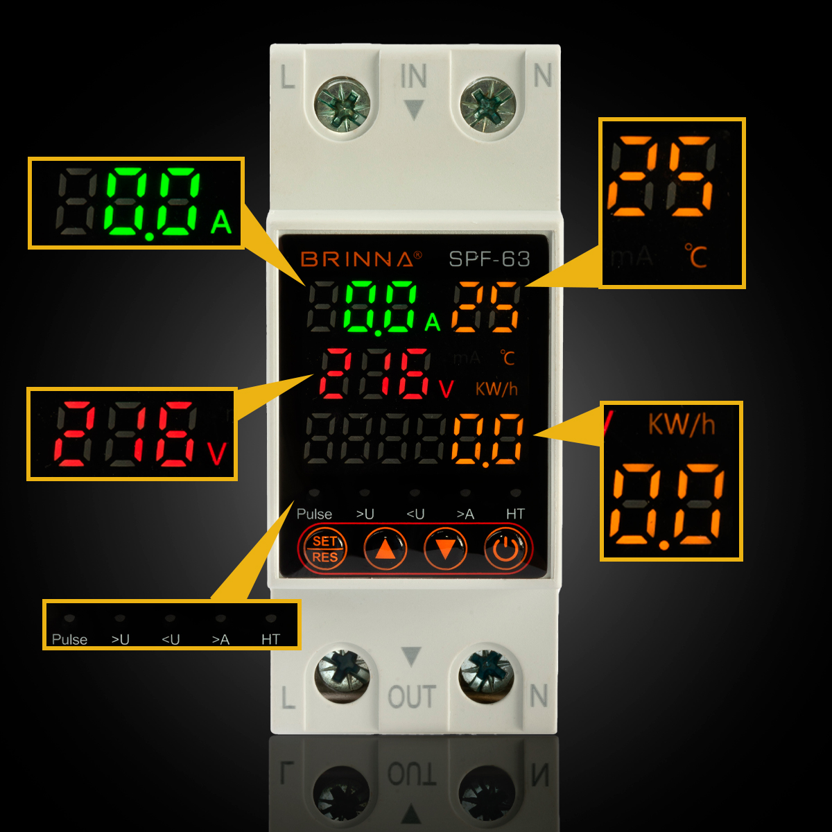 El SPF-63 es un protector de subtension, sobretensión, sobrecorriente y medidor de consumo monofasico reseteable, digital y configurable