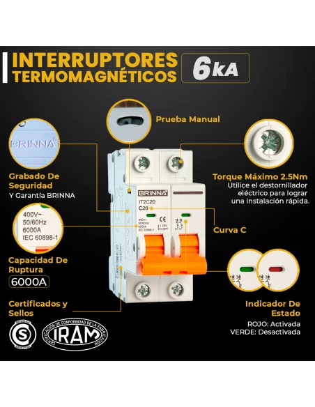 El Interruptor Termomagnético BRINNA es un dispositivo diseñado para proteger tus instalaciones eléctricas contra sobrecargas y cortocircuitos. Ideal para uso residencial, comercial e industrial.
